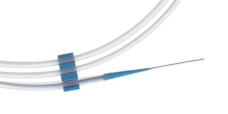 A angulação 360° em ambas as extremidades, impede que o catéter se desloque.